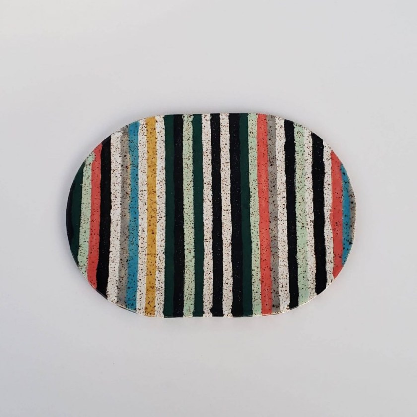 BMoreArt notes Pamela in their take on the 2021 American Craft Council Show. She was influenced by the Washington Color School artists- it certainly is very Modernist to see this melding with an everyday object.