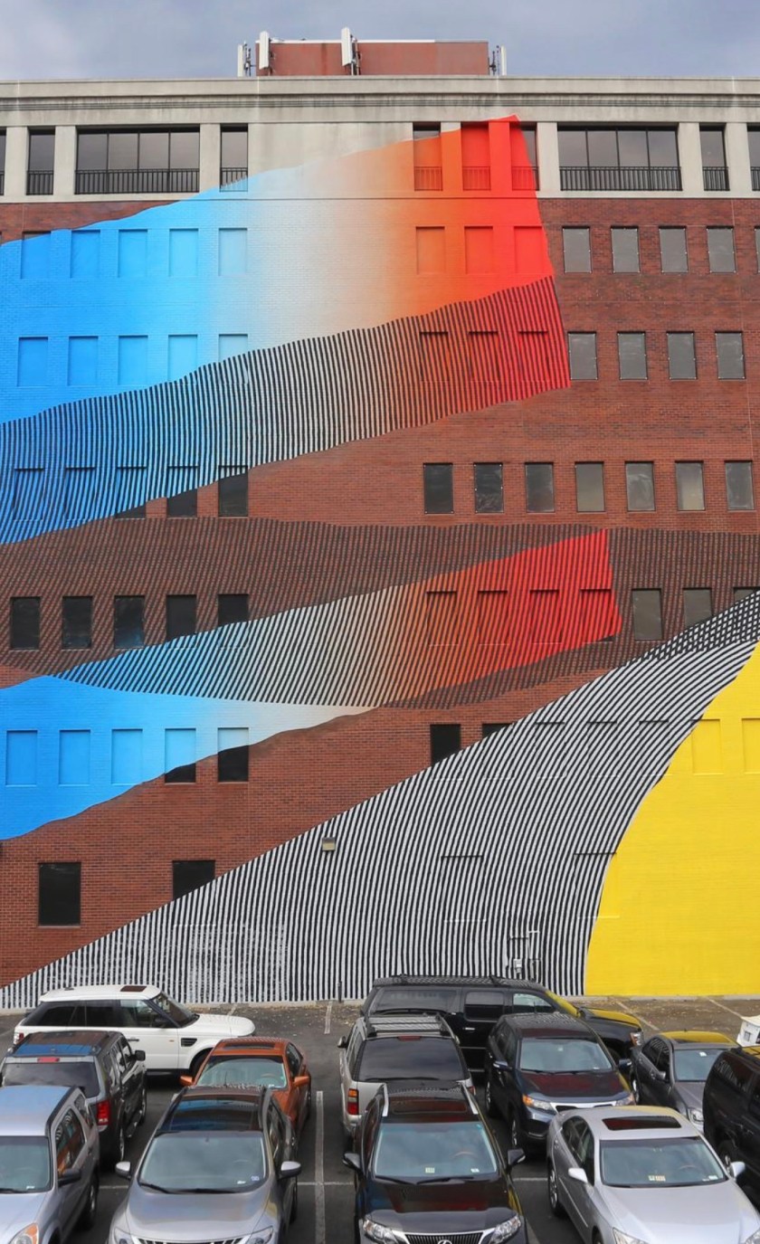 MOMO is an American artist who began his experimental outdoor work in the late 90s, with homemade tools and borrowed public space. Ten years of free ranging projects, centered around adapted masonry techniques, strategies based on collage, computer code, and seriality, came to form the basis of his visual language. This language finds its expression in paint, on commissioned walls and studio work from 2009 to the present day.