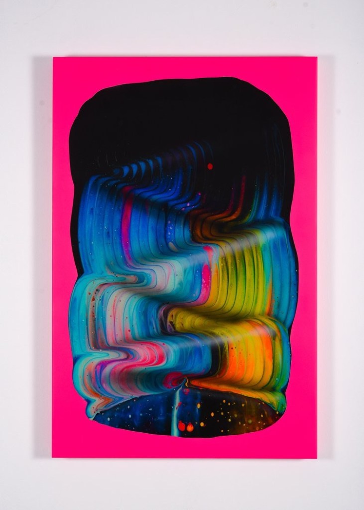 Arthur explores the mystery of consciousness as well as the marriage of physical bodies & spiritual energies of humans, animals, and nature. In his figurative works, various techniques are used as bottom layers or the “skins” of his subjects. He applies anywhere from 4 to 15 layers of clear resin between layers of acrylic paint, cut paper, pigmented inks, and spray paint to show depth, creating a 3-D effect. His artistic process is a modern alchemists’ dream, involving years of careful experimentation to perfect and achieve.