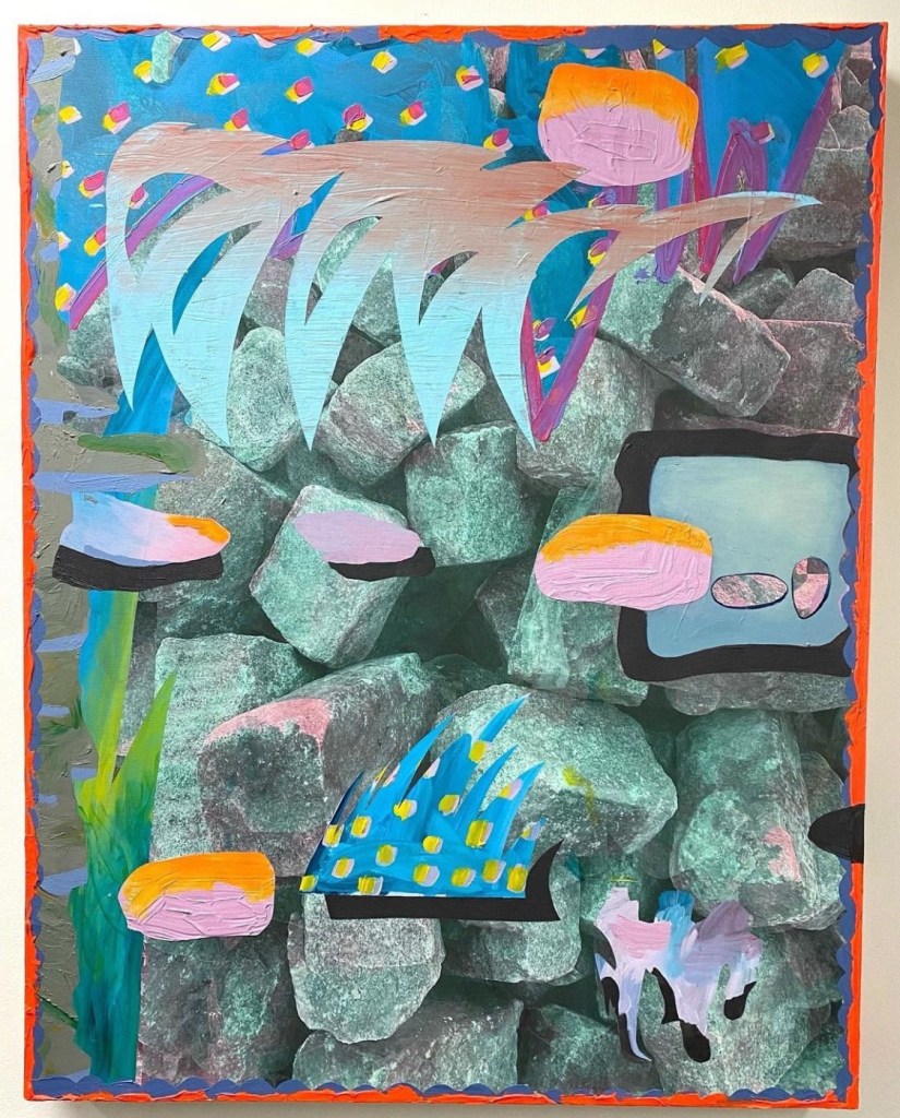 The resulting work embraces the absurdity of painterly abstraction against fictional digital landscapes superimposed onto real landscapes.”