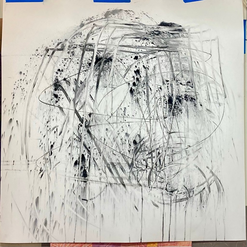 For the last couple of months I’ve been working on drawing-based project and exhibition that will take place at Birdland in July with fellow abstractionist Jason Lord. The impetus of the show, for me, is a continuation of my interest in parallels between the epoch in which late Modernism exploded, and the present day– specifically in pointing at the former to draw awareness to the latter. It has also been a refreshing and invigorating extension of my current practice as I have had the opportunity to use some mark making strategies I wouldn’t normally. There is a strong footprint on the finished work, specifically some large individual contributions, from Linda Cato, Peter Deligdisch, Cindy Morefield and Chris Thomas. There will also be a spectrum of participation by many artists from our local community, you’ll have to come visit to see who!