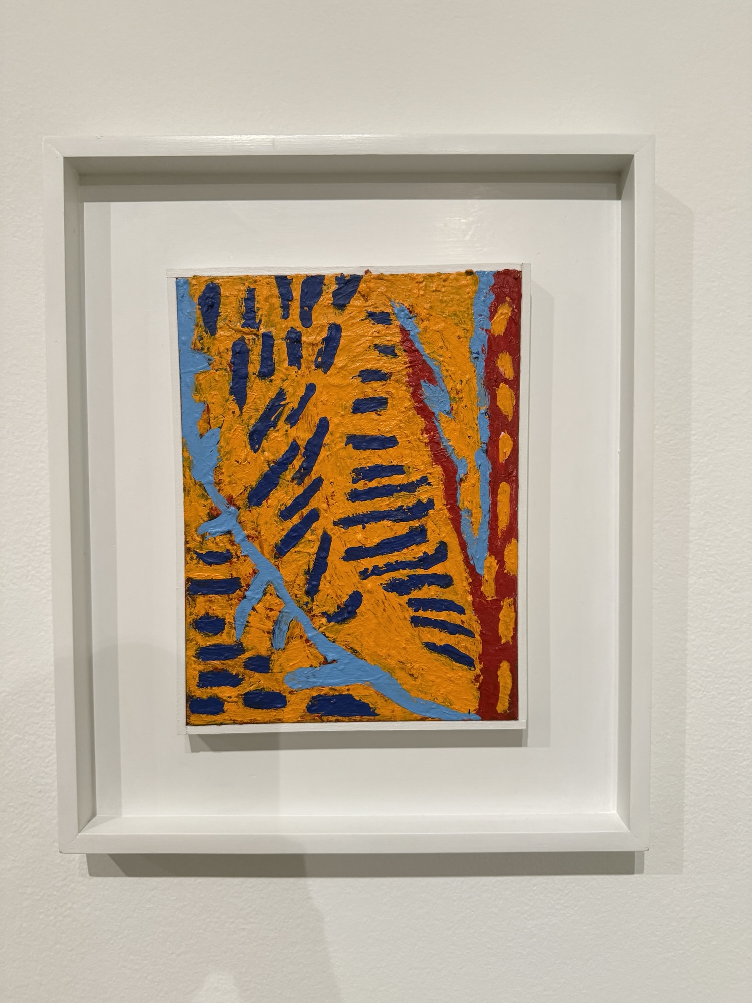 is an abstract painter who lives and paints in an old brick school building, vintage 1930. Cote works with contrasts and oppositions: the balance of planned vs. intuitive or spontaneous; of disorder evolving into order; of measured versus rough; of ground and elements; of simplicity (of parts) vs. complexity (of the whole). Below is from the Weatherspoon and is inspired by the colors in a Monarch.