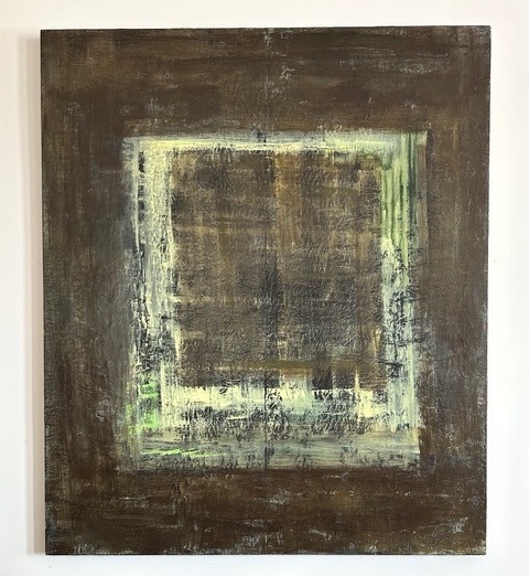 Natasha Sweeten recounts her history with the artist, noting that her paintings (seemed) to grow from concentrated, layered planes of light, before diving into an interview. Below is titled “Listening to the Ocean.”