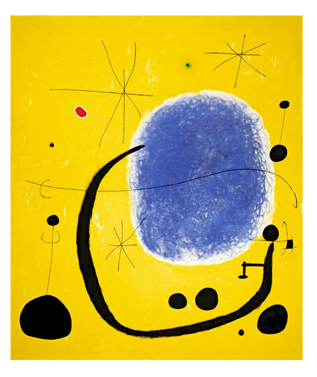 Writing about Jean yesterday made me think of Joan. According to MOMA, the Surrealists sought to liberate “the real functioning of the mind” through “a pure psychic automatism,” free of “any control exercised by reason.” Their approach to art making, as defined by Breton, inspired Miró. He later recounted, “Rather than setting out to paint something, I begin painting and as I paint the picture begins to assert itself….,The first stage is free, unconscious.” But, he continued, “The second stage is carefully calculated.”