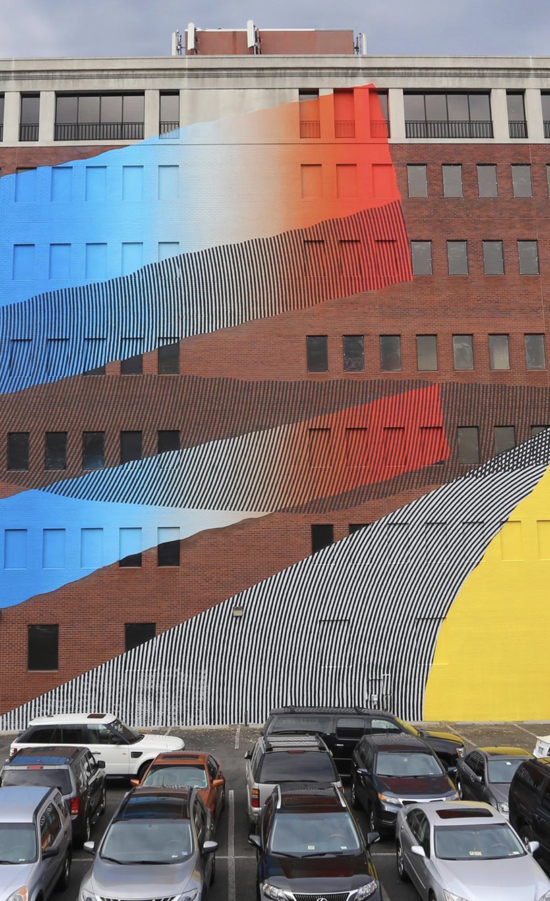 MOMO is an American artist who began his experimental outdoor work in the late 90s, with homemade tools and borrowed public space. Ten years of free ranging projects, centered around adapted masonry techniques, strategies based on collage, computer code, and seriality, came to form the basis of his visual language. This language finds its expression in paint, on commissioned walls and studio work from 2009 to the present day.