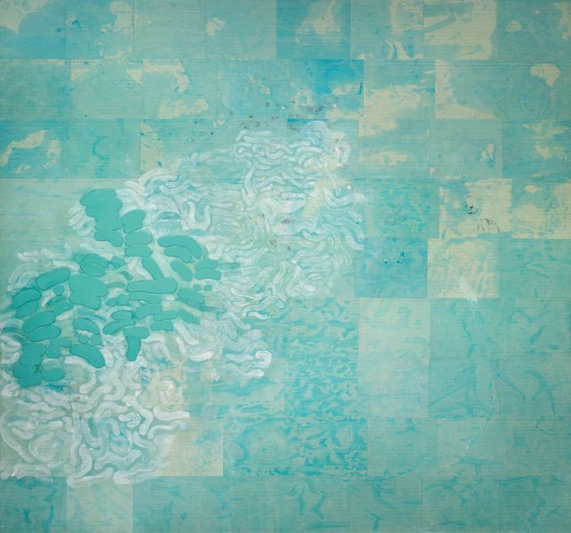 One of the topics that has interested me for some time is strategies to apply paint which allow viewers to see through layers- I don’t intend for the creation of the work to be completely transparent pun intended, quite the opposite. It also, frankly, allows acrylic paint to be something oil can’t- thick and transparent. Love the idea of a physical thing having an ambiguous optical presence.