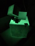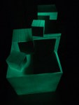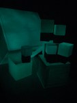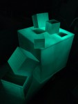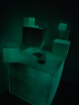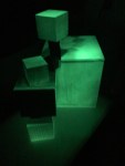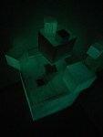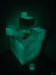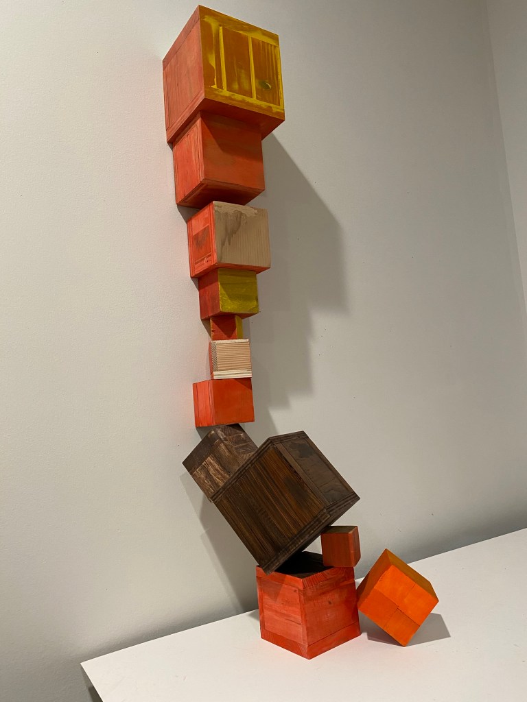 This iteration is “scaled up” in the sense that these are much larger iterations of the cube installations than anything I’ve shown publicly to date (larger than human-size) and “scaled down” because this exhibit only features the installation work and not paintings or assemblages. The space that was available was also ideal for this work, with the proximity to the work by viewers being super compressed.