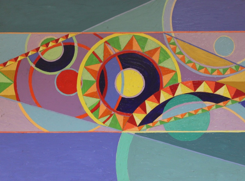 Ellsworth (the subject of the recent show Ellsworth Ausby: Somewhere in Space,” paintings from the 1960s and 70s, at Eric Firestone Gallery) was a significant African American artist whose works were concerned with exploring the “infinite possibilities of two-dimensional space.” He experimented with supports and surfaces, creating multi-part shaped canvas constructions arranged directly on the wall. His work is connected to Afrofuturism and the music of visionary Sun Ra.