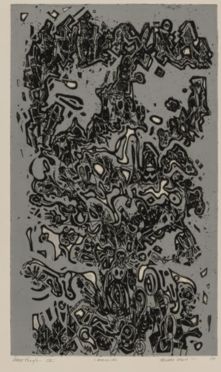 After reading this great article from Art News circa 2014, I settled on Norman. If you guessed from the print below that he was influenced by Ad Reinhardt, my theory is that went both ways. Read this bio from the Smithsonian and check out this Pinterest board I made as well.