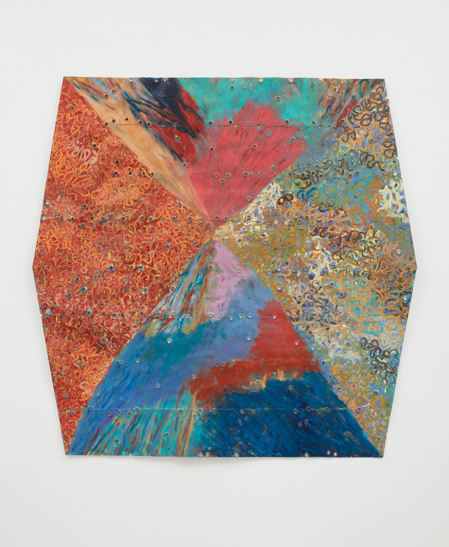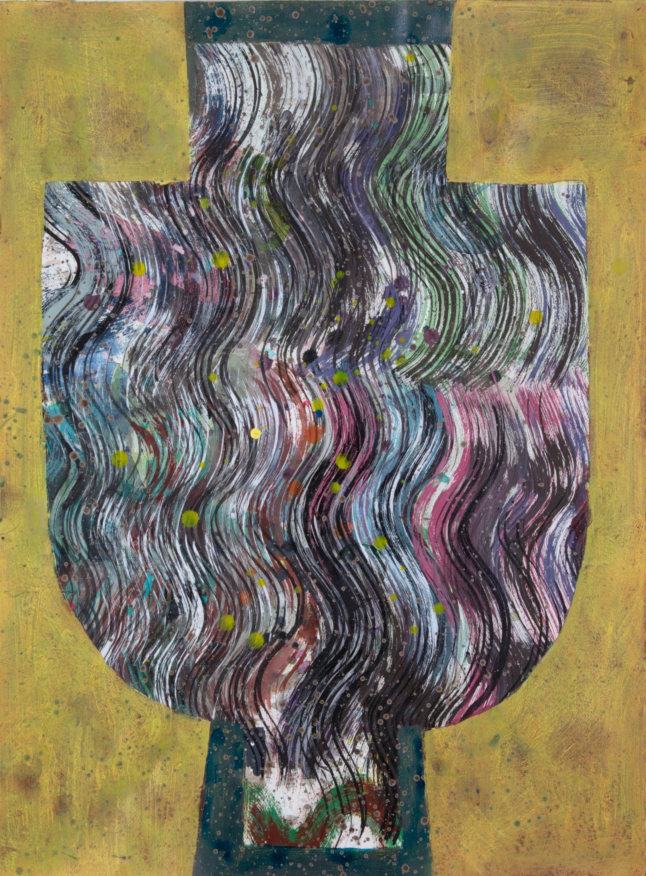 had the lovely piece below in Art on Paper 2023: The 47th Exhibition. Combining the unusual and routine, the extraordinary and mundane, she brings together life’s many aspects of inherent spontaneity and attempted order. She merges handmade methods of sewing with the mechanical technology of the risograph-a now outdated printing machine once used widely by schools and churches to create materials such as worksheets and pamphlets.