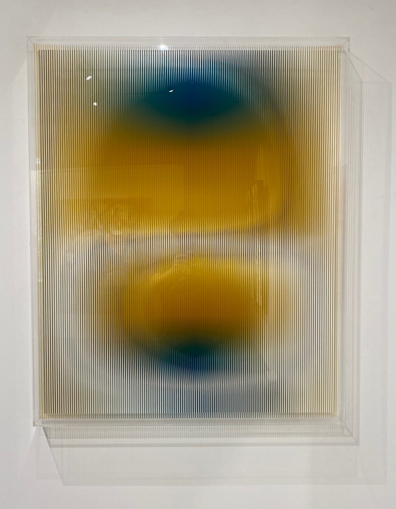 When writing about light recently, I made note of the influence that California Minimalism aka Light and Space has exerted on me. I’ve blogged about many of these artists and am somehow always discovering more. Peter is somewhat unique among his peers in his choice to paint on canvas. His gallery notes that he is fascinated by the uncertainty of human perception, and the duplicitous nature of vision, which can be both revealing and deceitful, and creates paintings that delve into this duality.