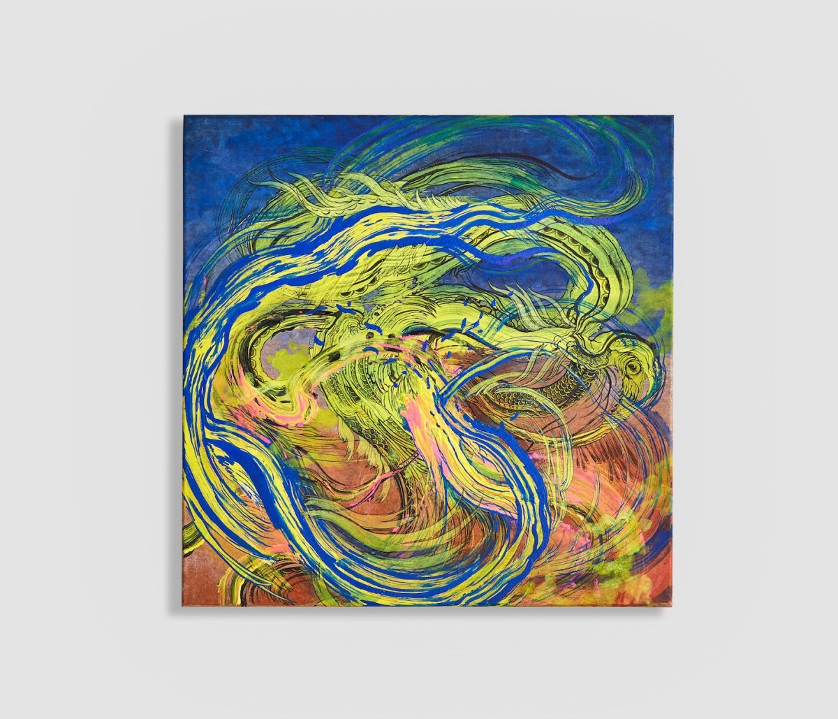 Sarah was someone the algorithm found for me. A lyrical abstractionist, she views the linear forms in her paintings as symbols that translate into invented narratives.